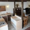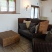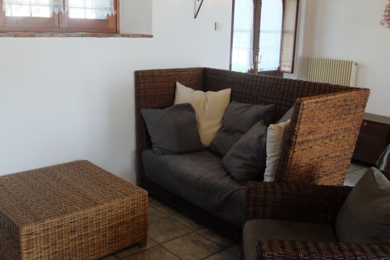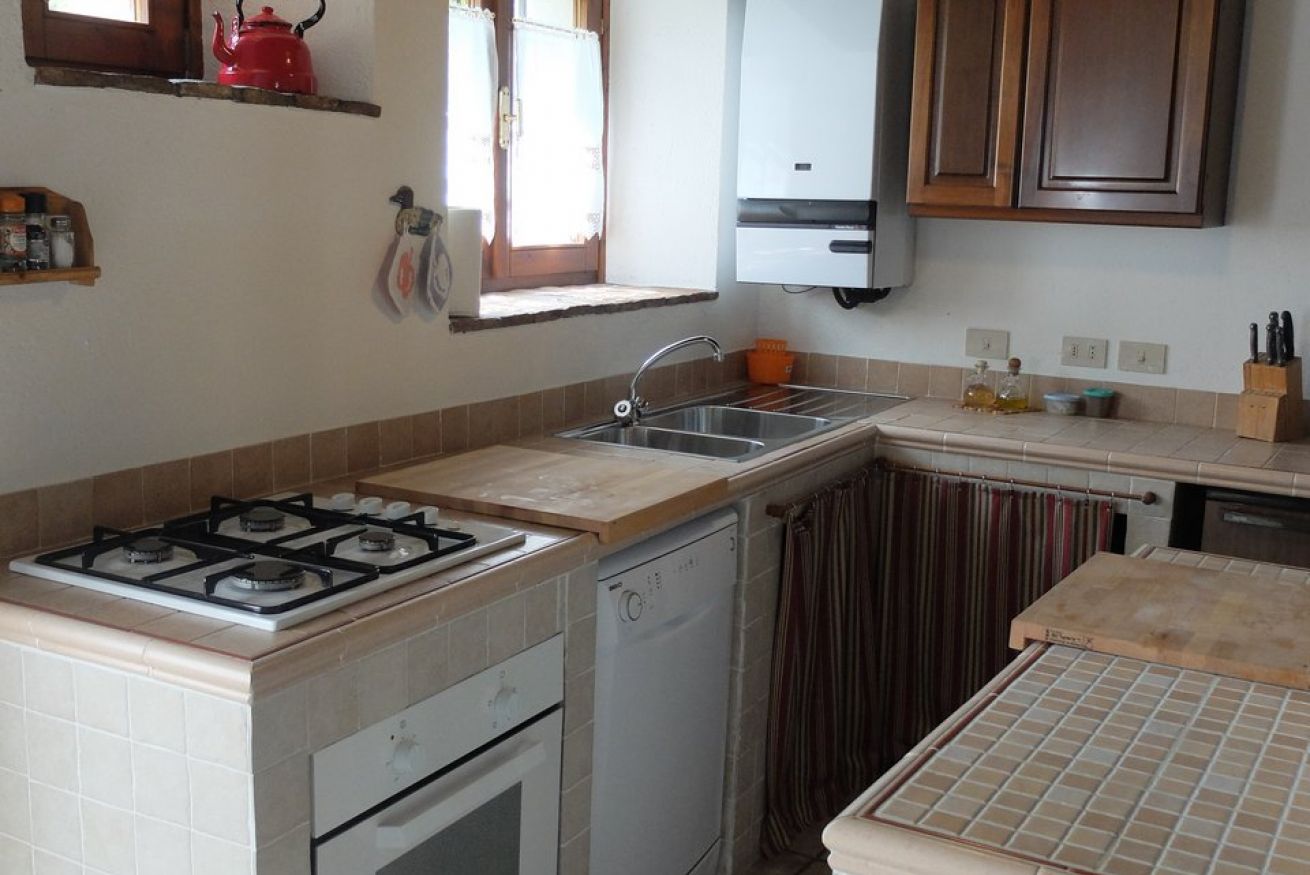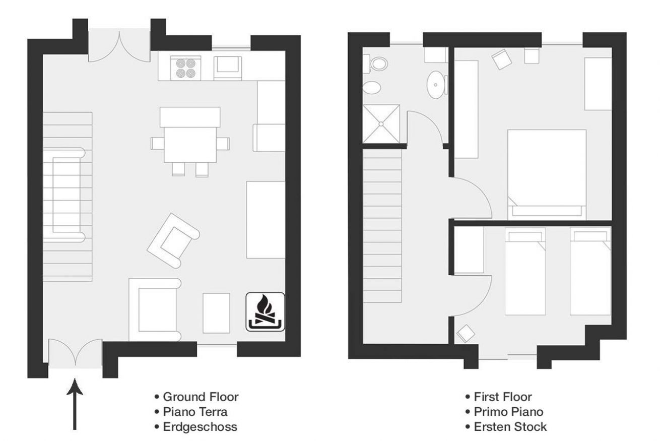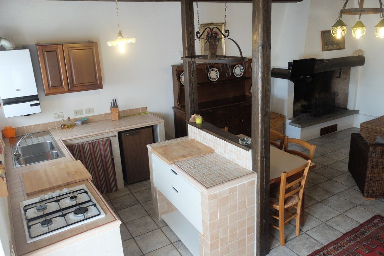 L'appartamento è disposto su due piani: un piano terra con un soggiorno spazioso ed una cucina attrezzata; un primo piano con un bagno completo e due camere da letto, una con letto matrimoniale ed una con due letti singoli. L'appartamento offre un giardino privato con BBQ ed accesso diretto alla piscina.